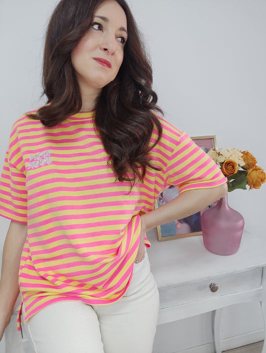Camiseta Bon Jour rayas