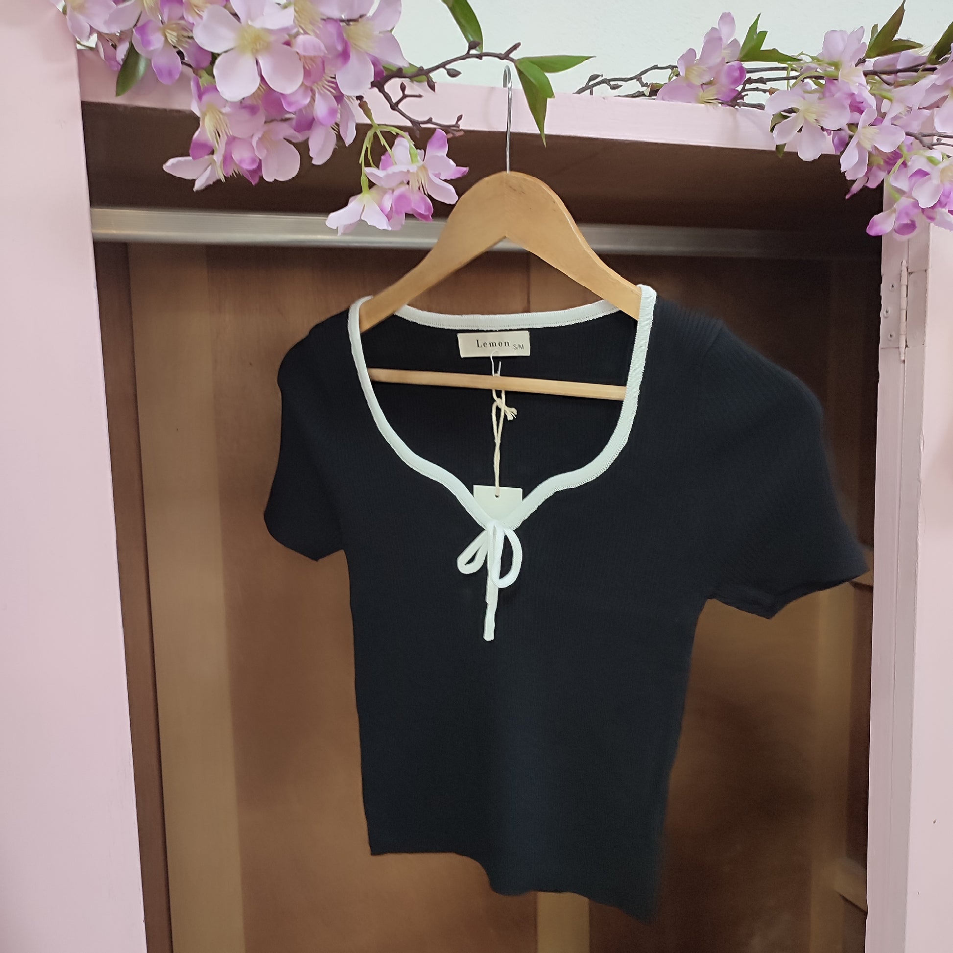 Camiseta de manga corta con diseño lazo en el escote en forma de corazón. Es tan bonita qué hará tus looks inolvidables. Tienes muchos colores para elegir y es por tallas S/M y L/XL.