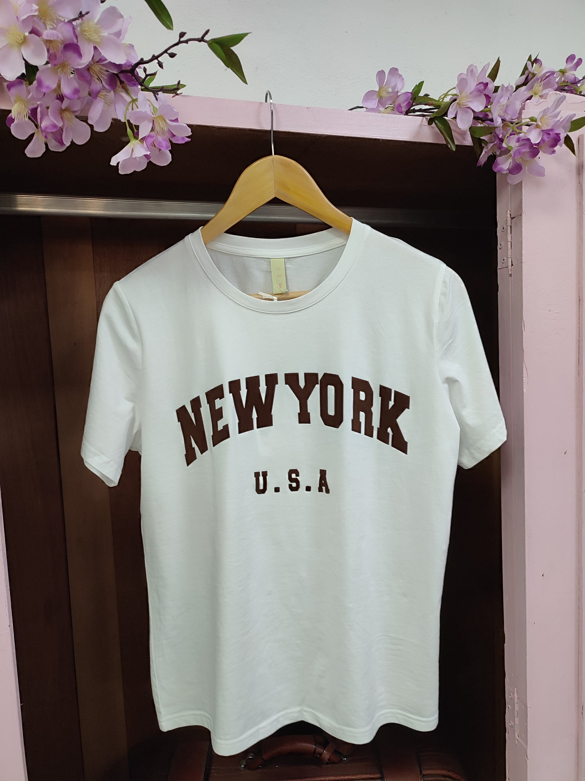 Camiseta con diseño de palabra New York .Es talla unica y se adapta genial desde S hasta L.