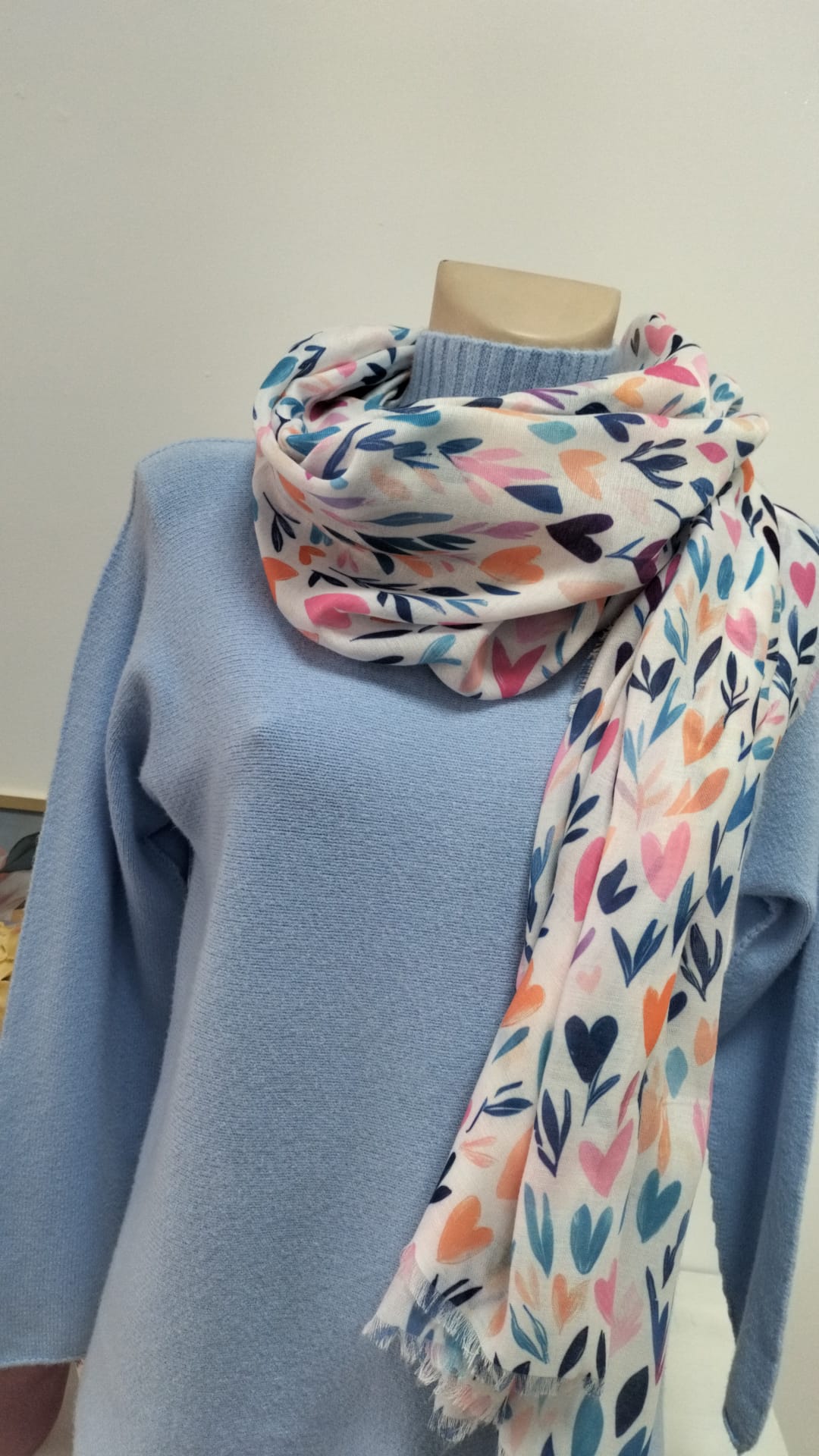 Nuevo pañuelo con estampado corazón en diferentes tonos. Ideal para la nueva temporada y darle un toque animado a tu look.